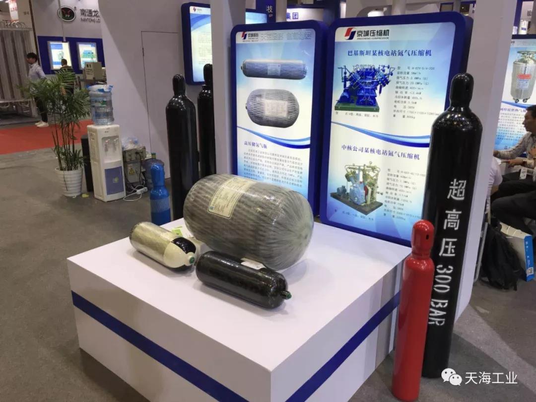 天海工业于本次展会展出了新研制的用于氢燃料电池汽车的70MPa车载供氢系统、高压轻质无缝气瓶、适用于低温气体的焊接绝热气瓶及呼吸器用铝内胆碳纤维全缠绕复合气瓶。展会现场气氛火爆,来参观咨询的客户络绎不绝,好评不断。